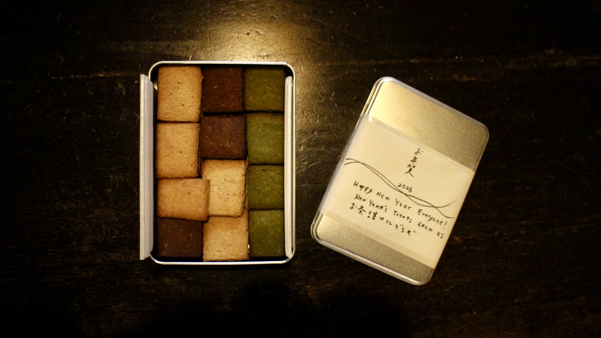 今年のお年賀に、ご近所のyoshihara coffeeさんにクッキー缶をご用意いただきました。